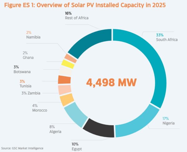 Si des pays leaders maintiennent leur avance, de nouveaux acteurs émergent avec force. Le marché reste dominé par l’Afrique du Sud (1,6 GW ajoutés), suivie du Nigeria (803 MW), de l’Égypte (500 MW) et de l’Algérie (400 MW). Cependant, la tendance la plus significative est la montée en puissance de marchés émergents. Le Maroc, la Zambie et la Tunisie ont ainsi respectivement augmenté leur capacité de 204 MWc, 139 MWc et 120 MW en 2025, souvent grâce à une forte adoption du solaire distribué.