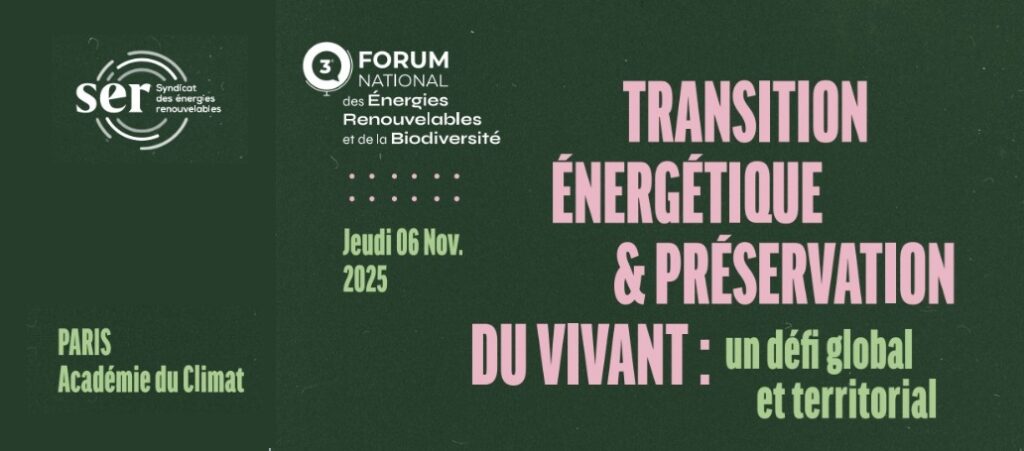 Le Syndicat des énergies renouvelables organise le jeudi 6 novembre 2025 la troisième édition du Forum national des énergies renouvelables et de la biodiversité. Cet événement se tiendra à l’Académie du Climat à Paris et aura pour thème central « Transition énergétique et préservation du vivant : un défi global et territorial ».